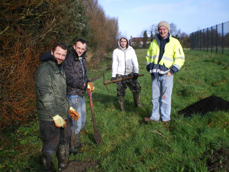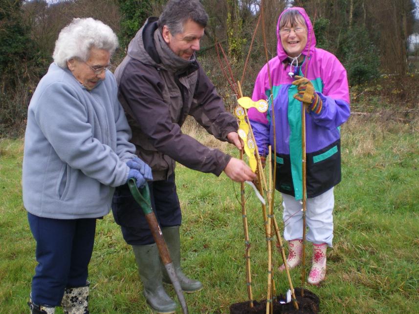 The photograph above shows volunteers Joan Le Gallais, Nigel Clarke and Valerie Loaring planting the 20 Acer October Glory trees on Saturday January 10th 2015