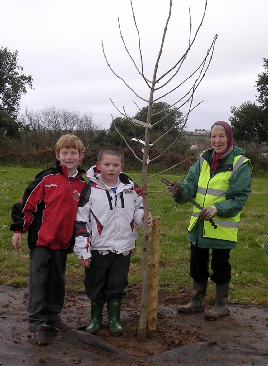 March 2009 - The Floral St Peters Group asked Green Legacy Guernsey to provide 24 trees for La Croix Cemetery to create a natural barrier between what will become a burial site and vehicle access. Fifty-four pupils from La Houguette School planted the trees. Each tree bears the name of the children who planted it.