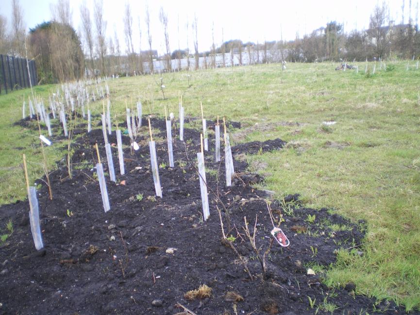 The list of trees include wild cherry, crab apple, bird cherry, wild pear, damson and domestice fruiting such as cooking apple, eating plum, pear and cherry. Also it is intended to plant a mix of raspberry, blackcurrant, redcurrant, white currant and gooseberry. Other trees will include rowan, whitebeam, rubis, dog rose and guilder rose. The safety group wants the children to connect with nature and for them to learn lessons that they need when they leave school.